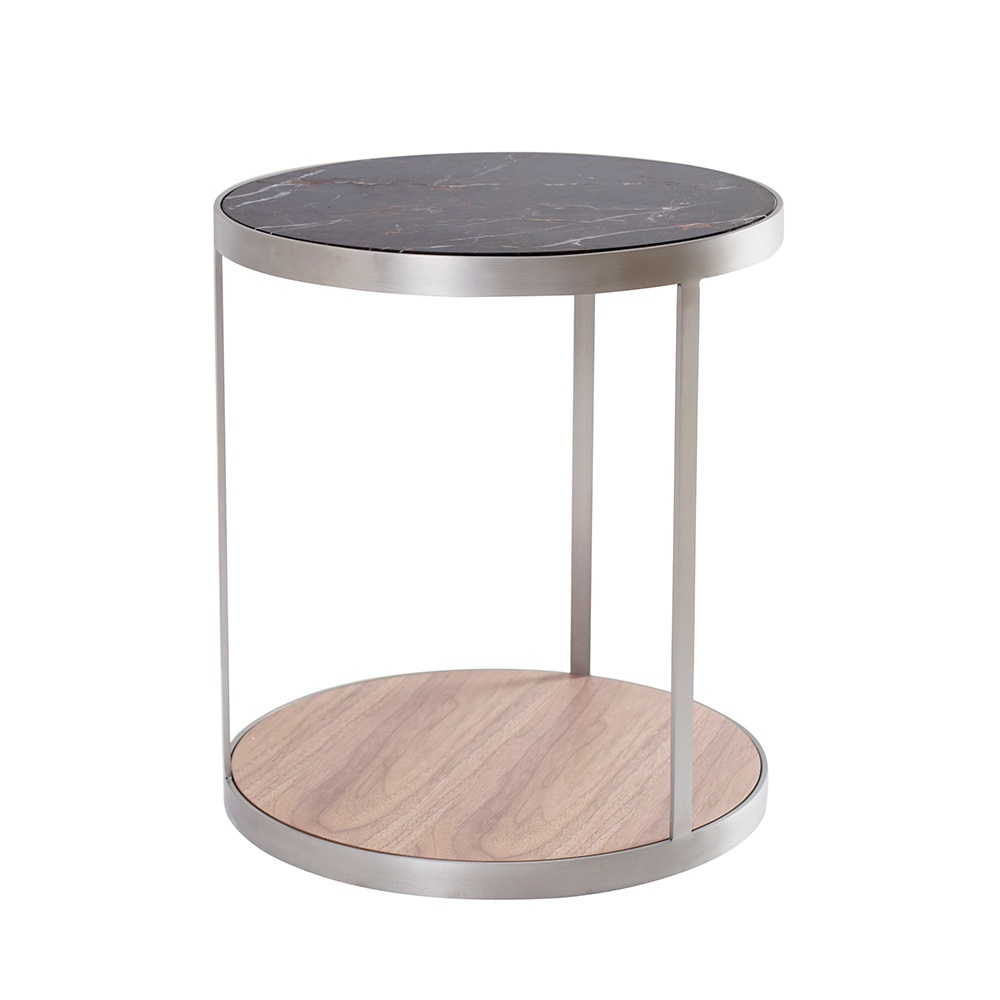 CT-018B 黑金花面板(人造)+胡桃木底板+拉絲不銹鋼金工件