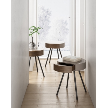 石色亮光面板 圍板 底板+胡桃木實(shí)木拼抽面 +胡桃木實(shí)木拼三聚氰胺抽盒+黑啞光金工件