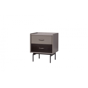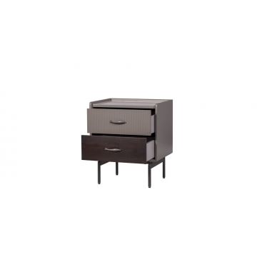 普佩石巖板面板+石色啞光主體+煙熏木皮下抽面+金屬深灰色金工件