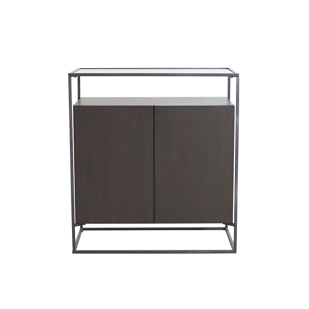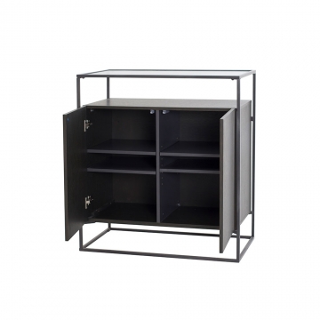 CB-127-橡木石灰色主體+灰色亞光三聚氰胺板中立板-活動(dòng)層板+透明鋼化玻璃面板+金屬深灰色金工件